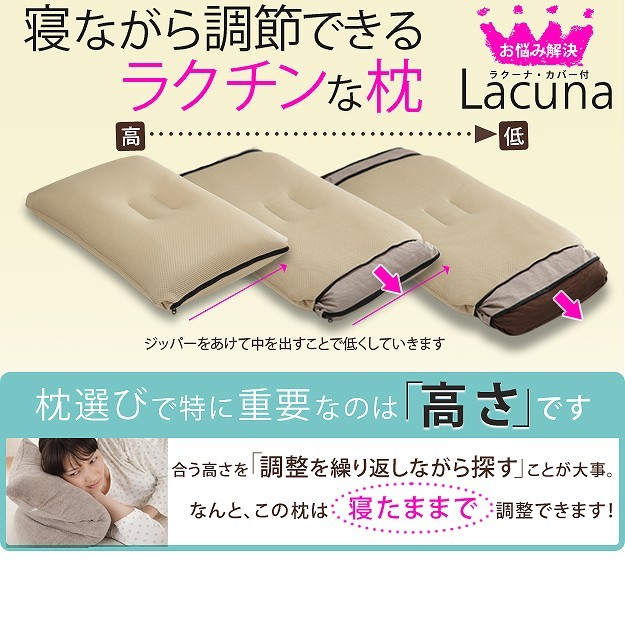 高さ調節 枕 寝ながら高さ調節サラサラ枕 ラクーナ カバー付 35×50cm 洗える 日本製 mu-90400016 店舗 カフェ ラウンジ ロビー ホテル 法人 枕 枕 抱き枕 寝具 送料無料 北欧 モダン 家具 インテリア ナチュラル テイスト 新生活 オススメ おしゃれ 後払い