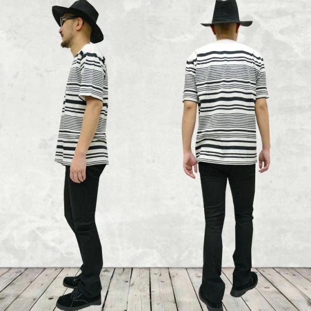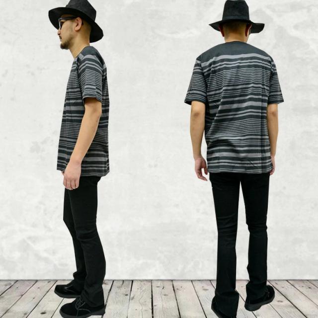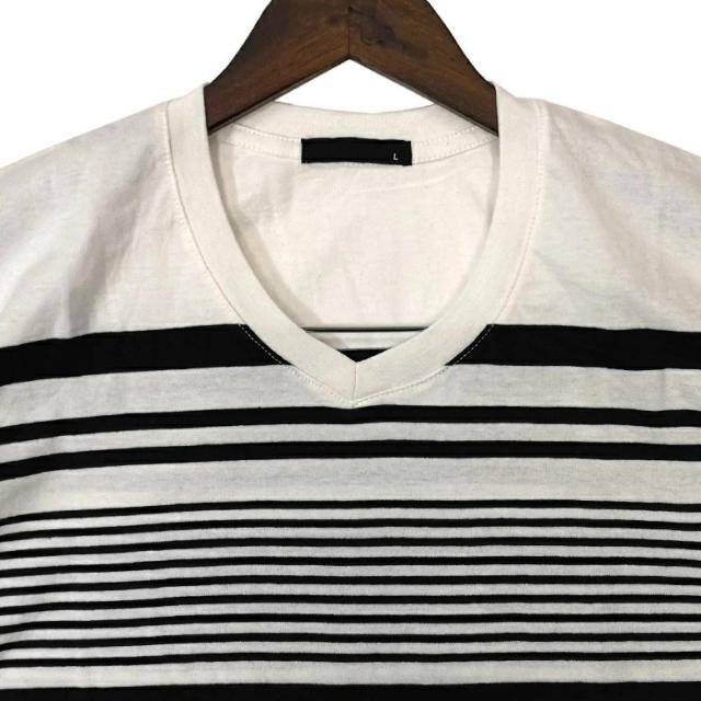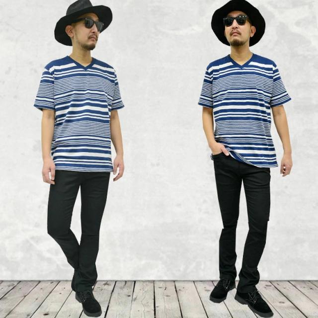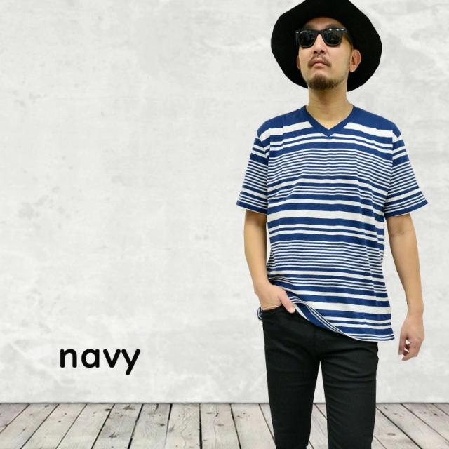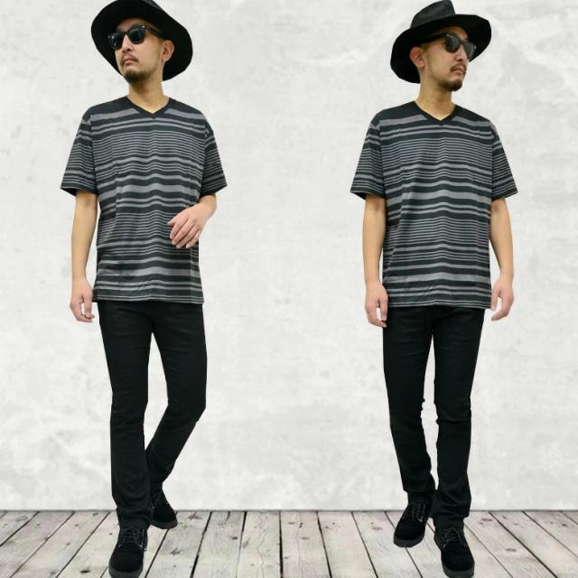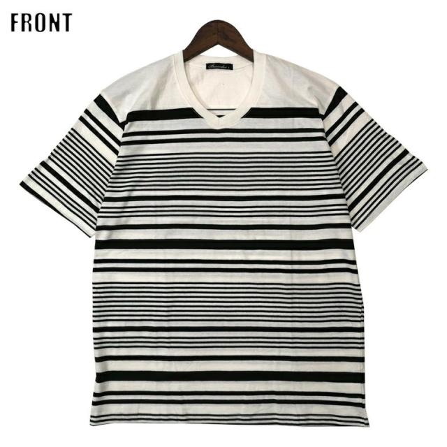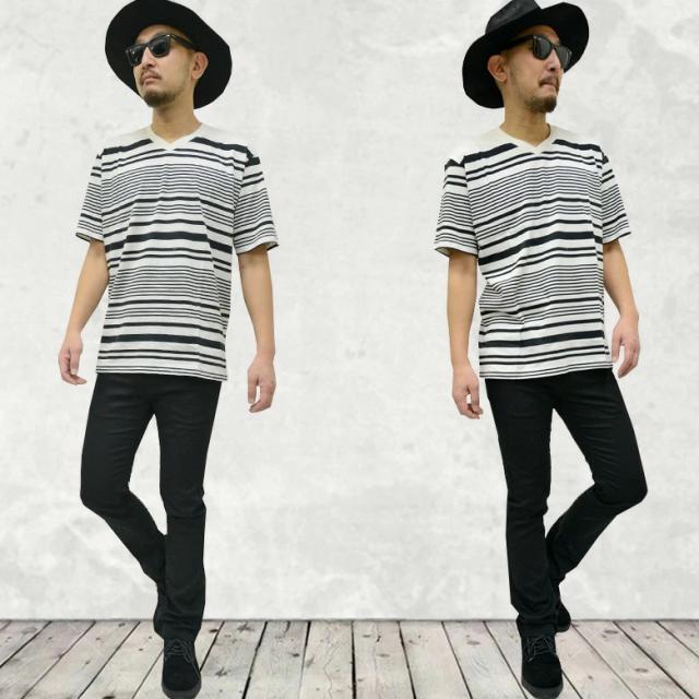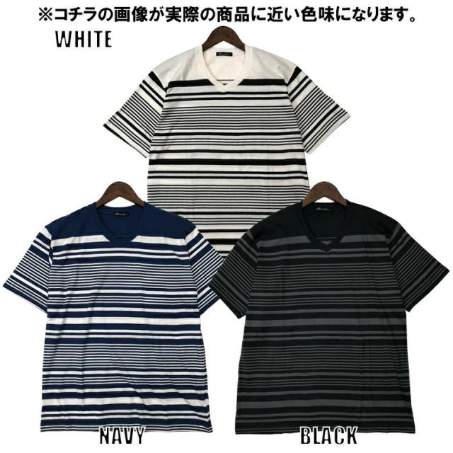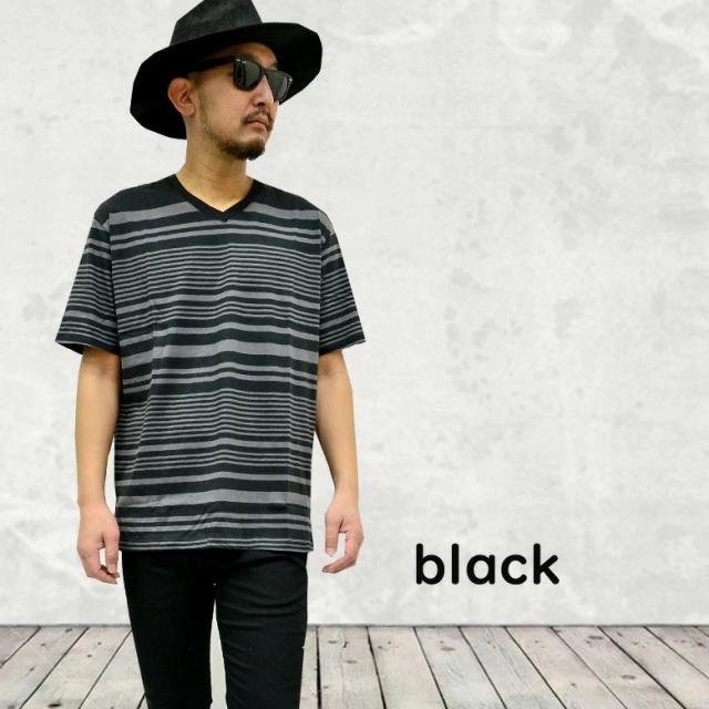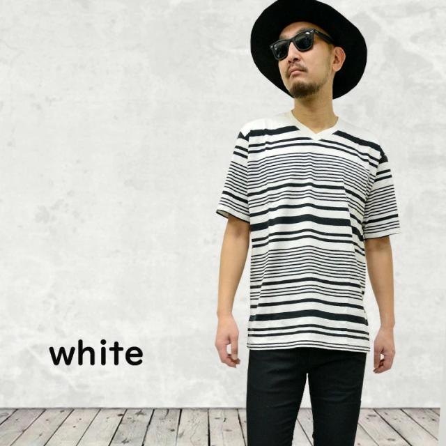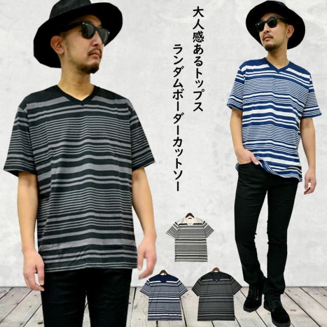 【閉店セール】Tシャツ カットソー Vネック ボーダー柄 半袖 97522 コットン 綿100% トップス ユニセックス メンズ ブラック ネイビー ホワイト チャコール ボーダー ランダムボーダー 大人系 ややゆったり お洒落 おしゃれ ゴルフ M L LL