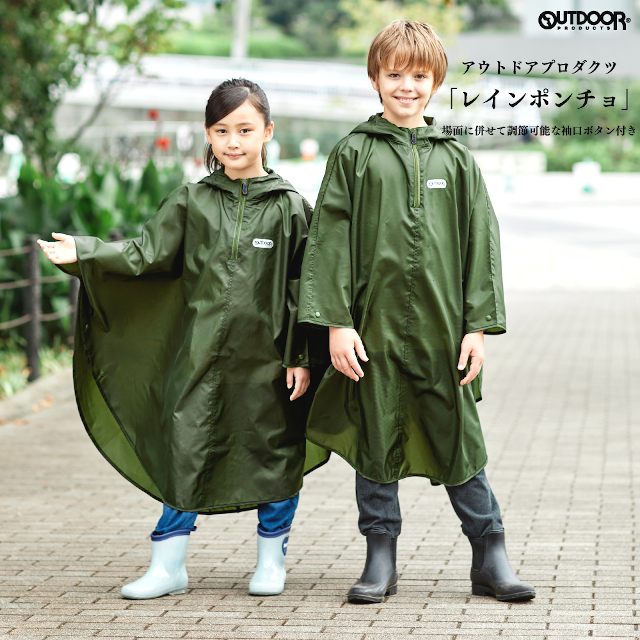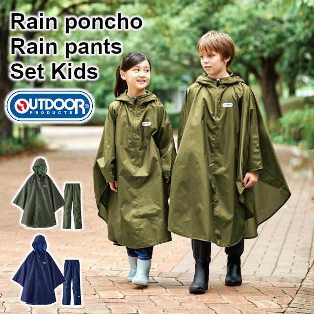 【2023年モデル】【OUTDOOR】キッズ レインポンチョ レインパンツ 上下セット【自転車 バイク おしゃれ 通学 通勤 レイン ポンチョ パンツ レインウェア レディース メンズ 撥水加工 カッパ 合羽 雨合羽 男女兼用 男性用 女性用 レジャー 雨具 雪 送料無料】
