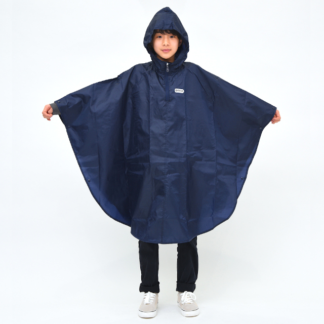 レインポンチョはシンプルなデザインですが、フードには脱げ防止ゴム仕様。 |