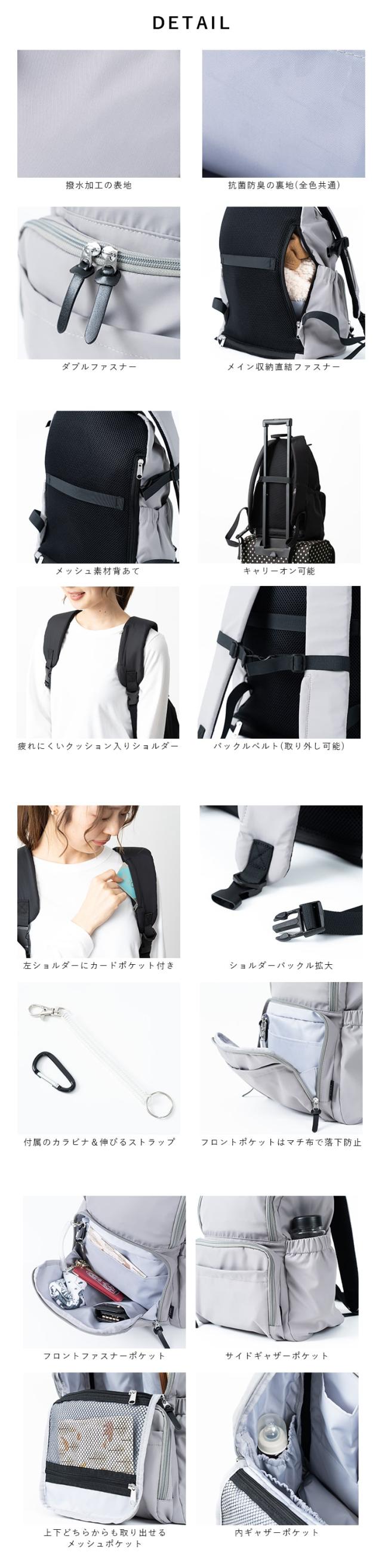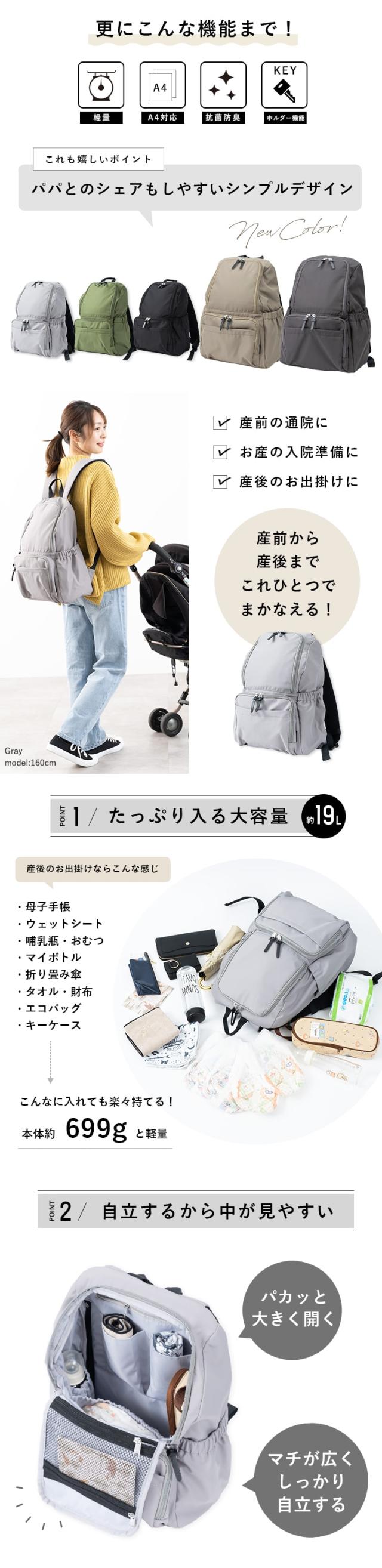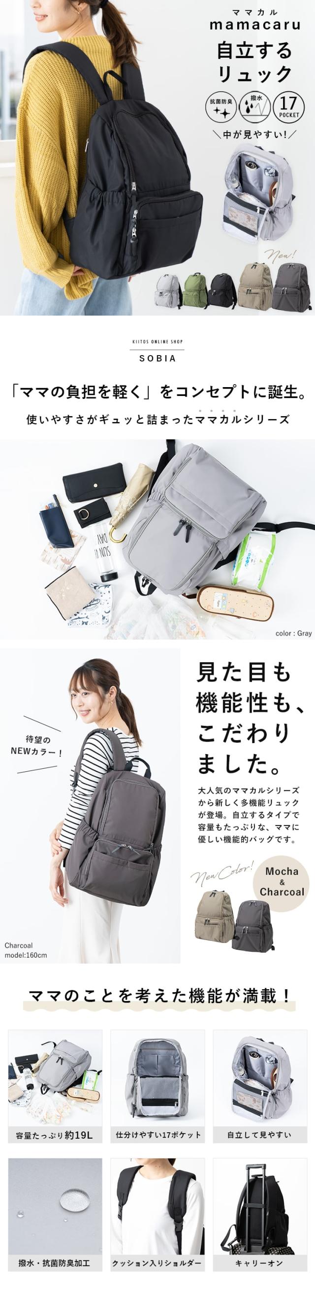 大容量でポケットいっぱい、毎日を頑張るママにぴったりなママカシリーズに自立して中が見やすいリュックが新登場です♪