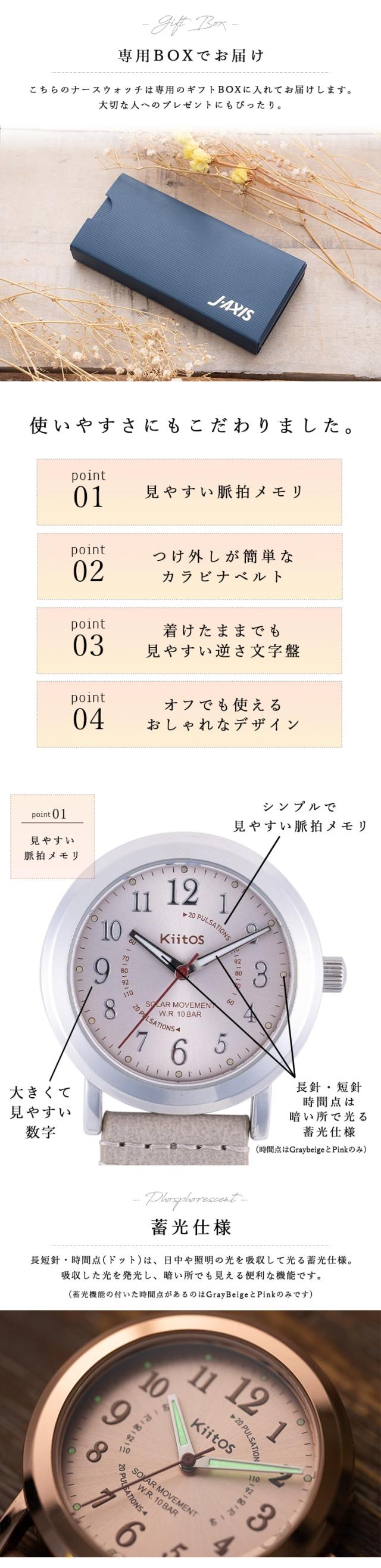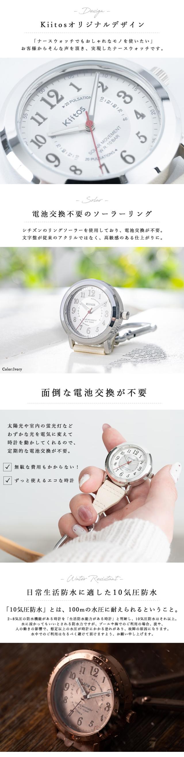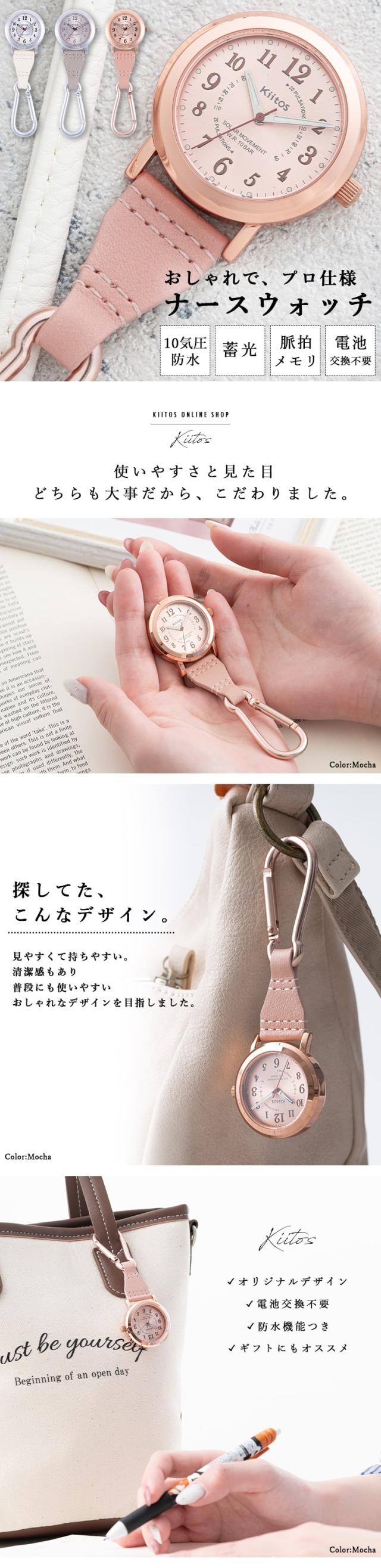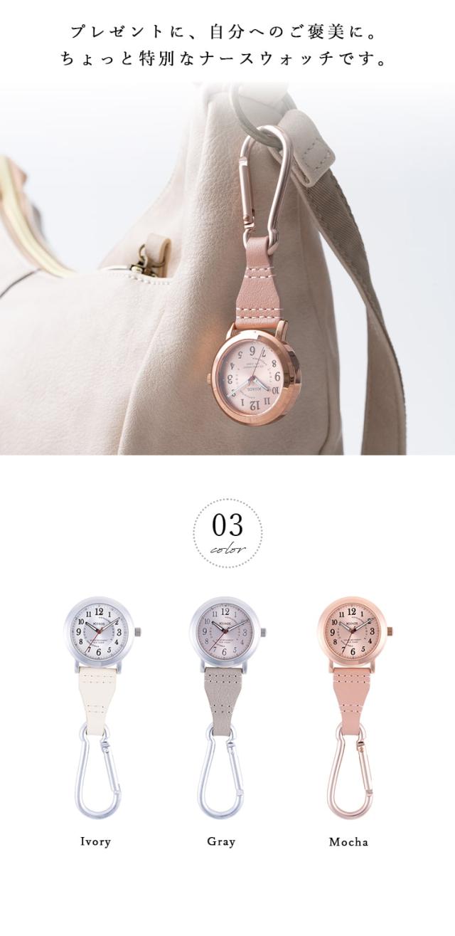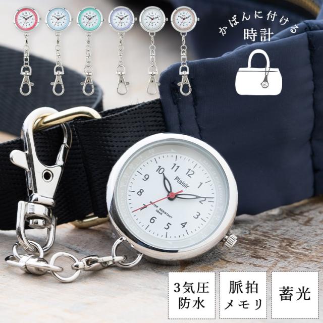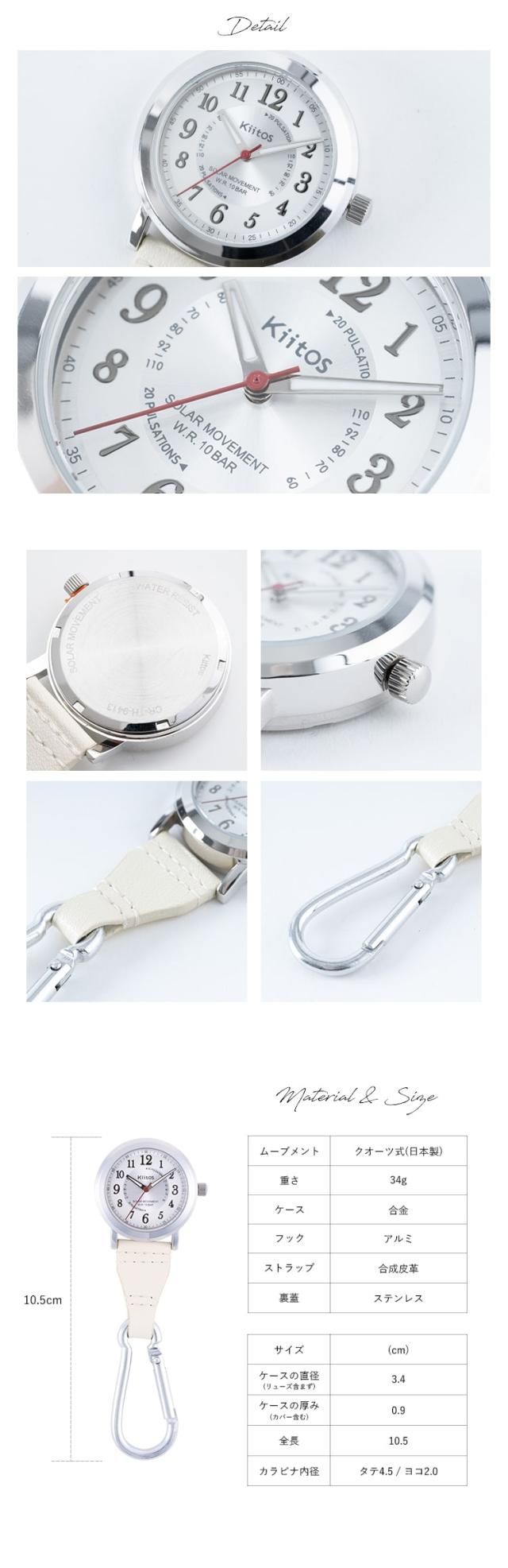 ナースウォッチ ソーラー 10気圧防水 ギフト 電池交換不要 カラビナウォッチ 蓄光針 懐中時計 フックウォッチ 看護師 脈拍メモリ 見やすい 20代 30代 40代 プレゼント 1年間のメーカー保証付 メール便送料無料