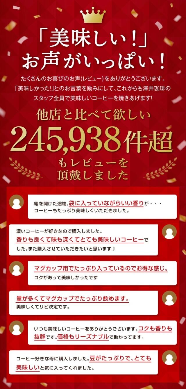 - 夜勤明けのまだ勤務中という時間に、必ず美味しいコーヒーが飲みたくて、他メーカーのコーヒーも頂くのですが、澤井さんのコーヒーは格別です。一番キツイ辛い時間を一杯のコーヒーで乗り越えています。