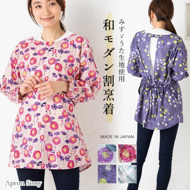 【メール便1枚のみ送料無料】和モダン割烹着 日本製 みすゞうた生地使用 春夏 おしゃれ かわいい ギフト プレゼント【N】【M】