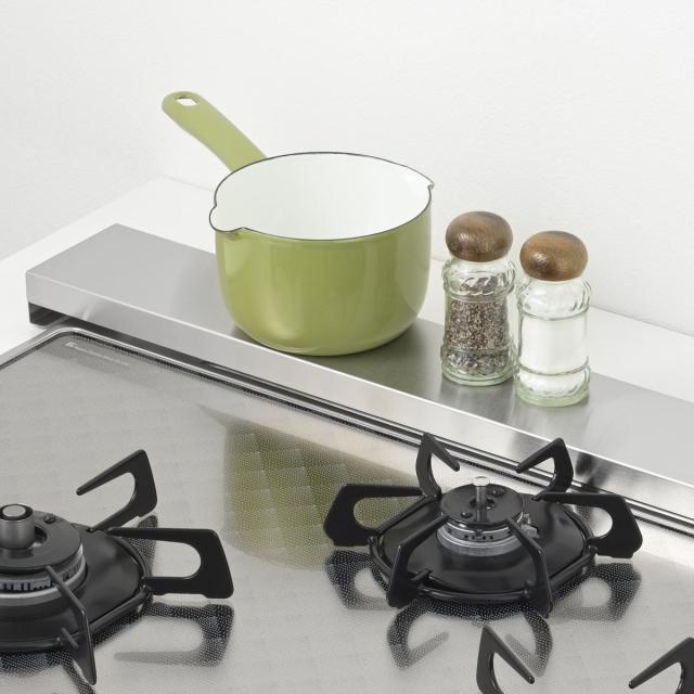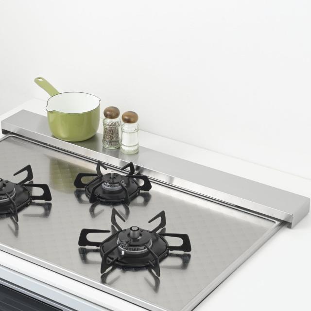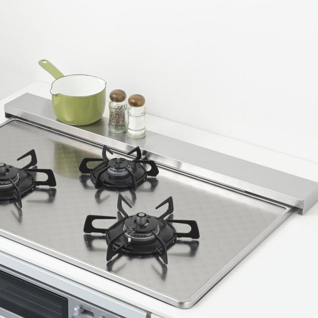 置くだけで、汚れやすく掃除がしにくいグリルの排気口部分に飛び散る油やホコリからしっかりガードします。今まで使わなかったコンロ周りのスペースを有効活用できます。