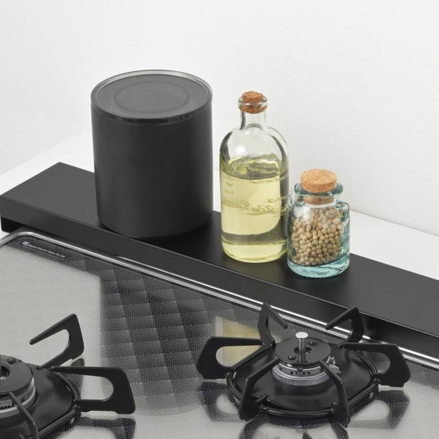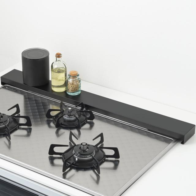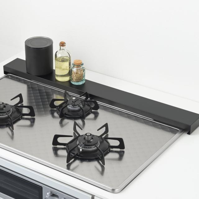 置くだけで、汚れやすく掃除がしにくいグリルの排気口部分に飛び散る油やホコリからしっかりガードします。今まで使わなかったコンロ周りのスペースを有効活用できます。