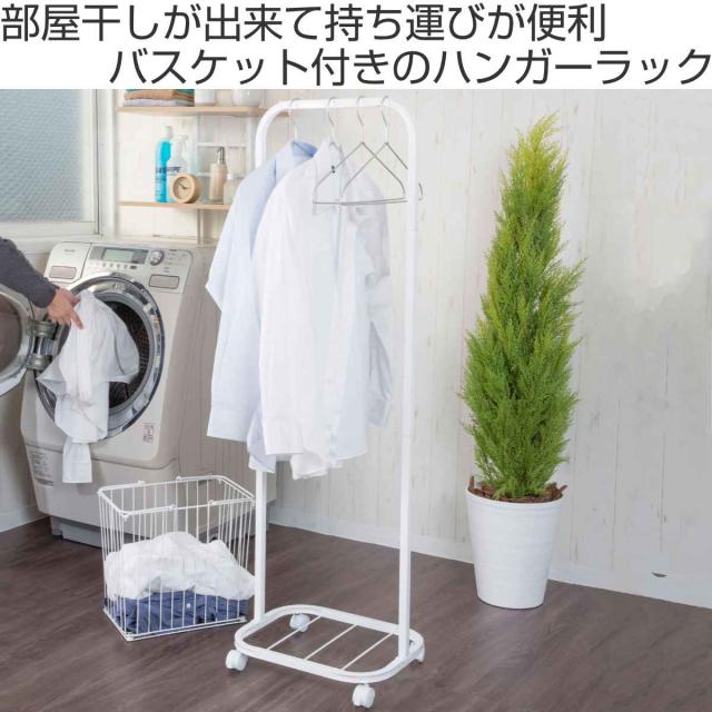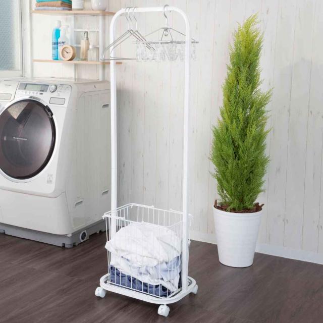 ランドリーラック ランドリーハンガーラック ( ラック ランドリー ハンガーラック バスケット 洗濯かご 洗濯物 脱衣かご 分別 洗濯物入れ 収納 キャスター付 ホワイト シンプル )