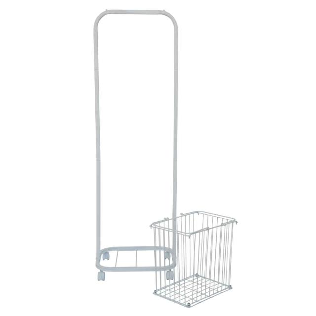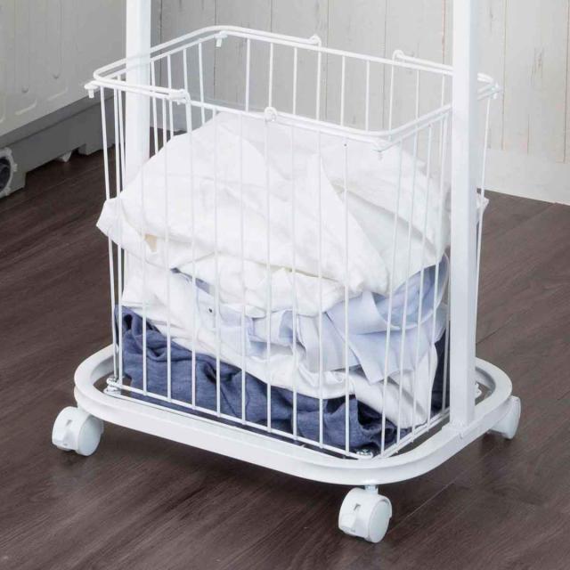 洗濯物を分別して持ち運べる大カゴ付きランドリーハンガーラック