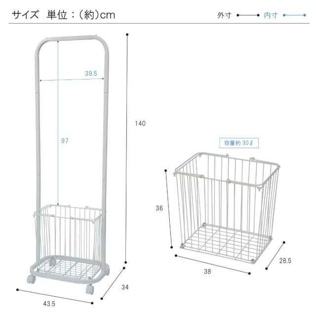 | サイズ | 約 幅43.5×奥行34×高さ140(cm) カゴ:幅28.5×奥行38×高さ36(cm) |