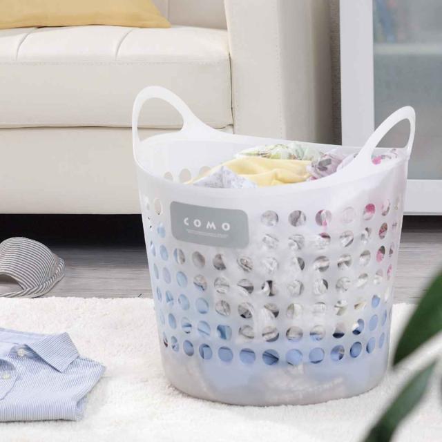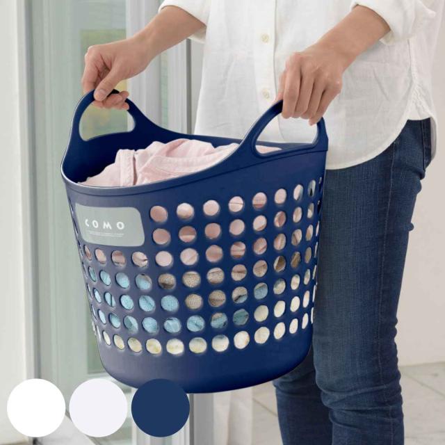 ランドリーバスケット コモバスケット Lサイズ ( バスケット ランドリー 持ち手付 洗濯 脱衣かご ソフト 日本製 洗濯かご 収納 おもちゃ 水回り 脱衣所 シンプル 軽量 ホワイト ネイビー ナチュラル 無地 )