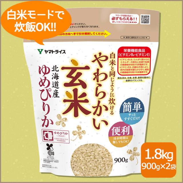 玄米 ゆめぴりか 白米と同じように炊けるやわらかい玄米 900g×2袋 令和7年産 北海道・沖縄は送料900円
