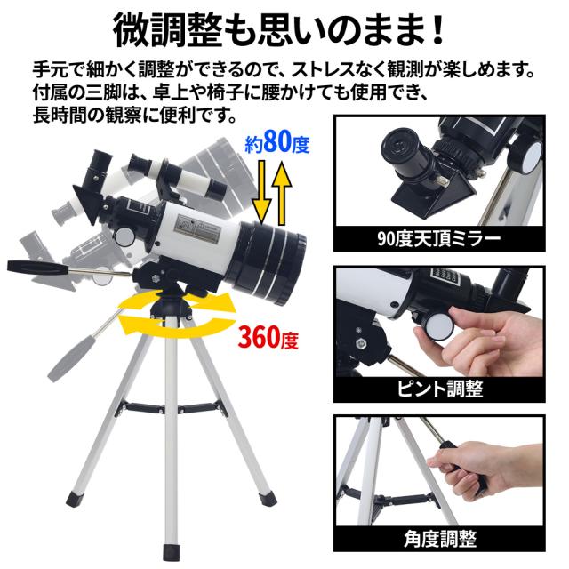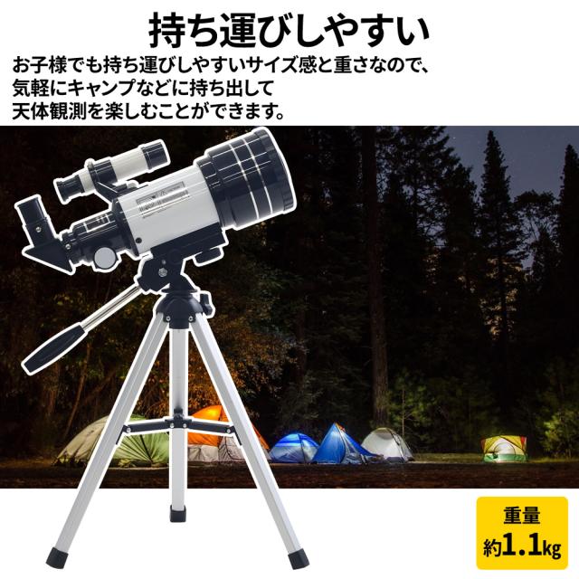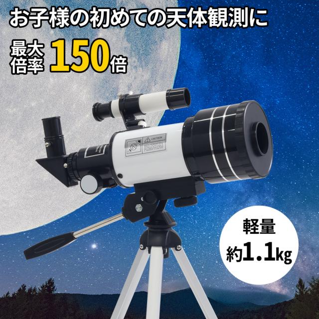 口径70mm 焦点距離300mm 屈折式 倍率15〜150倍 宇宙 流星群 観察 観測 理科 月 惑星 流星群 バードウォッチング コンパクト 軽量 持ち運び 子供 中学生 高校生 キッズ 子供用 初心者用 卓上 アウトドア レジャー キャンプ 夏休み 自由研究 小学生 初心者 キッズ 七夕 天の川 太陽系 惑星 月 夏の大三角 秋の四辺形 送料無料