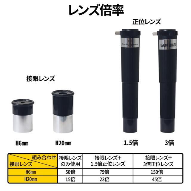 接眼レンズ H6mm (50倍) 、 H20mm (15倍)