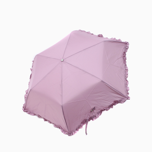 パープルピンクカラーでフリルデザインの、大人っぽい上品さもある折り畳み傘は、サイズもコンパクトサイズなので使わない時は鞄の中に入れて持ち運びも◎