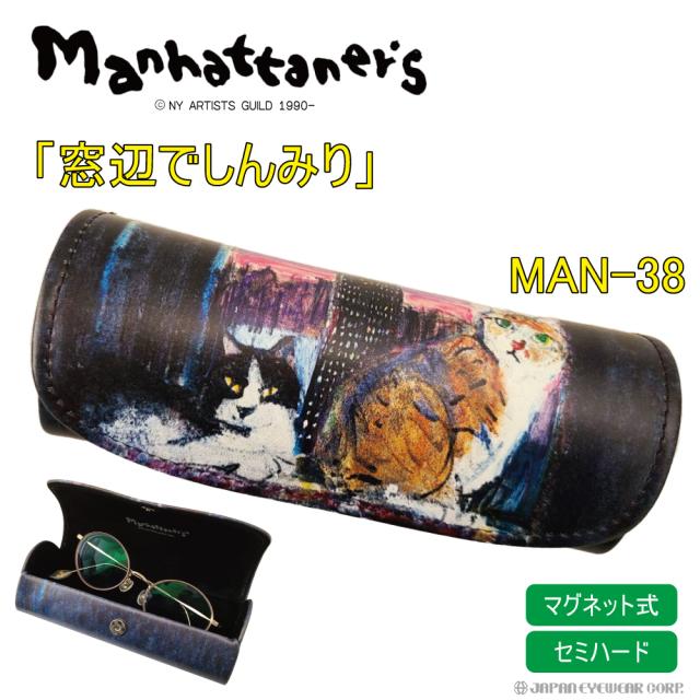 メガネケース ネコ Manhattaner’s (マンハッタナーズ) MAN-38 窓辺でしんみり 軽量 ボタンマグネット式 眼鏡 セミハードケース 猫 ねこ メガネ かわいい オシャレ カラフル めがね