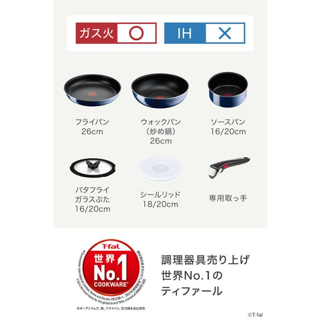 T-fal ティファール インジニオ・ネオ ロイヤルブルー・インテンス セット9 L43792 送料無料 フライパン セット品 ガス火専用 フライパン 26cm ウォックパン 26cm 片手鍋 ソースパン 16cm 20cm