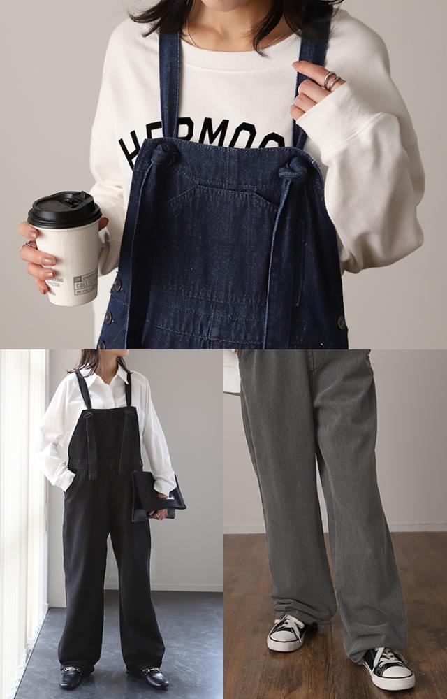 シンプルで大人が着やすいかぐれ定番人気のデニムサロペットパンツです。