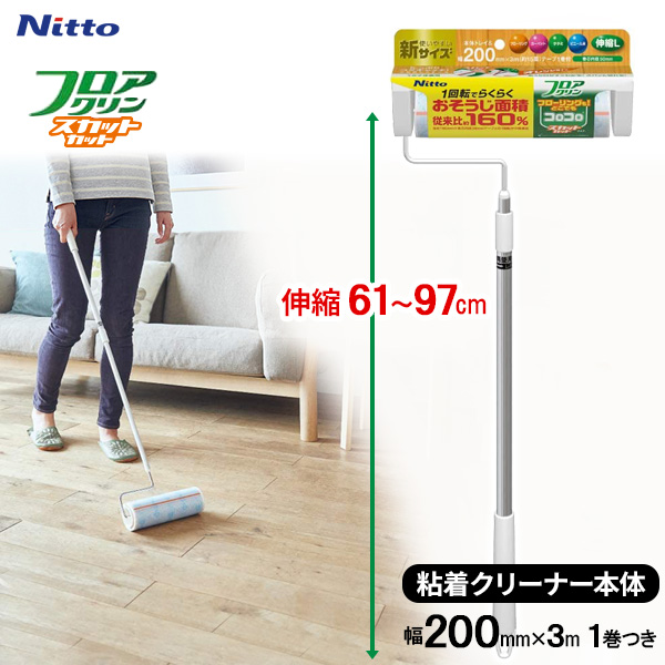コロコロ フロアクリン SC200 伸縮 L C4436 | 粘着クリーナー 幅広 床もOK 伸縮する ころころ フローリング カーペット 絨毯 じゅうたん 畳 タタミ ビニール床 スカットカット ペットの毛 髪の毛 花粉 ゴミ取り クリーナー