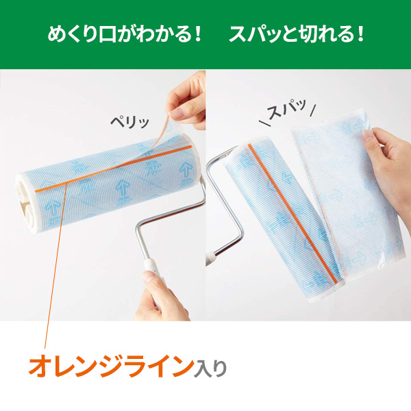 強い粘着剤と弱い粘着剤を組み合わせた「W粘着」の「コロコロ」伸縮タイプ。