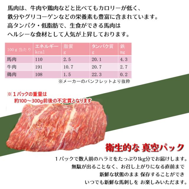生食用 馬刺 馬刺し ハラミ 1kg 馬肉 桜肉 希少部位 はらみ 約100g-約300g 個包装 ・馬刺しハラミ1kg・