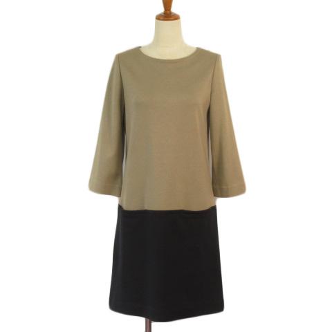 【中古】ドゥクラッセ DoCLASSE ワンピース ジャージー バイカラー ストレッチ 7 ベージュ 紺 ネイビー レディース