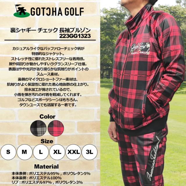 【SALE特価】ガッチャゴルフ 長袖 ジャケット 撥水 ストレッチ 裏起毛 223GG1323 バッファローチェック GOTCHA GOLF 防寒【新品】RCBR ゴルフウェア ブルゾン DEC3