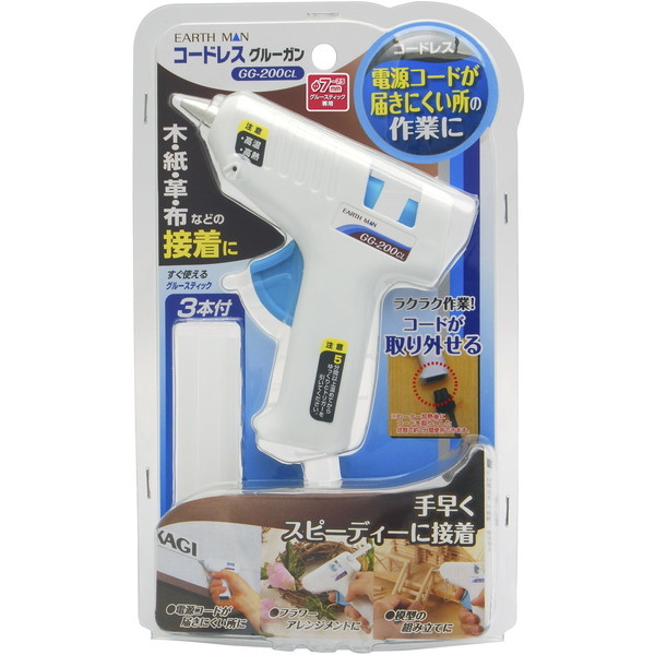 ★ 木・紙・革・布などの接着に、電源コードが届きにくい所の作業に使えるコードレスグルーガンです。