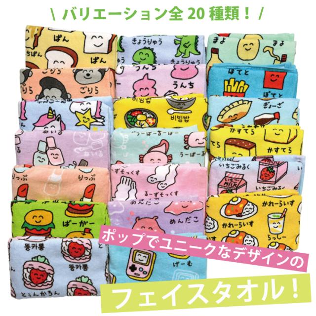 【2枚までメール便280円対応】フェイスタオル プリント 20種類 タオル おもしろ雑貨 生活雑貨 34×75cm【キャラクター 遠足 子供用 通園 通学 入学式 キッズタオル】┃