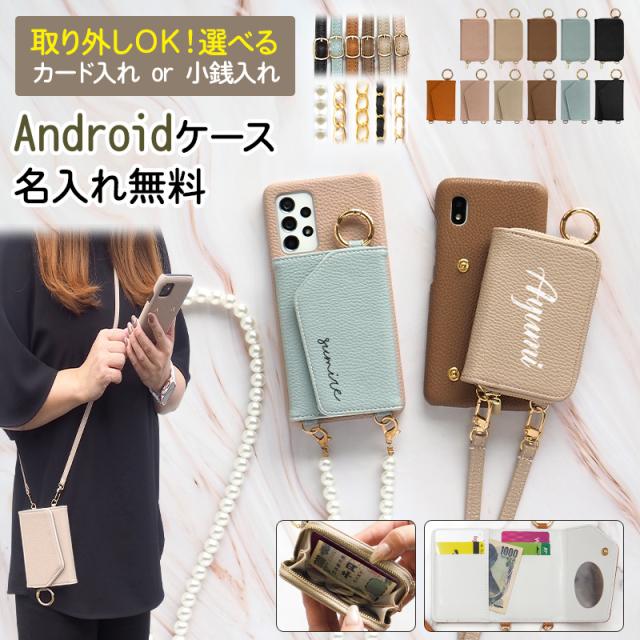 スマホケース AQUOS OPPO Google Pixel【レザー×カードor小銭入れ ロングストラップ×名入れ印刷】メール便送料無料 受注生産【印刷】