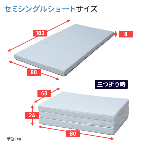マットレス 高反発 高弾性 三つ折り 幅80 奥行180 厚さ8cm セミシングル 敷き布団 抗菌 防臭 コンパクト 収納ラクラク ベッドマットレス セミシングルマットレス 折りたたみ マットレス 洗えるカバー 山善 YAMAZEN 【送料無料】