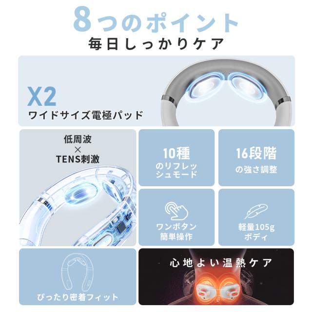 ラッピング対応 x 母の日| ネックマッサージャー 【2026年最新モデル】 EMS 温熱 10種類モード 16段階 低周波 ネック マッサージャー マッサージ 首 肩 筋肉 ネックケア 首ケア コードレス ギフト プレゼント 誕生日 リラックス リラクゼーション