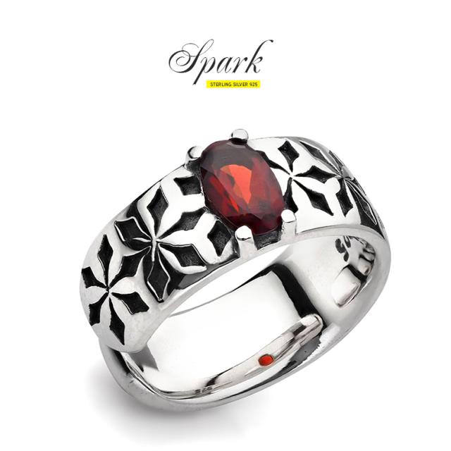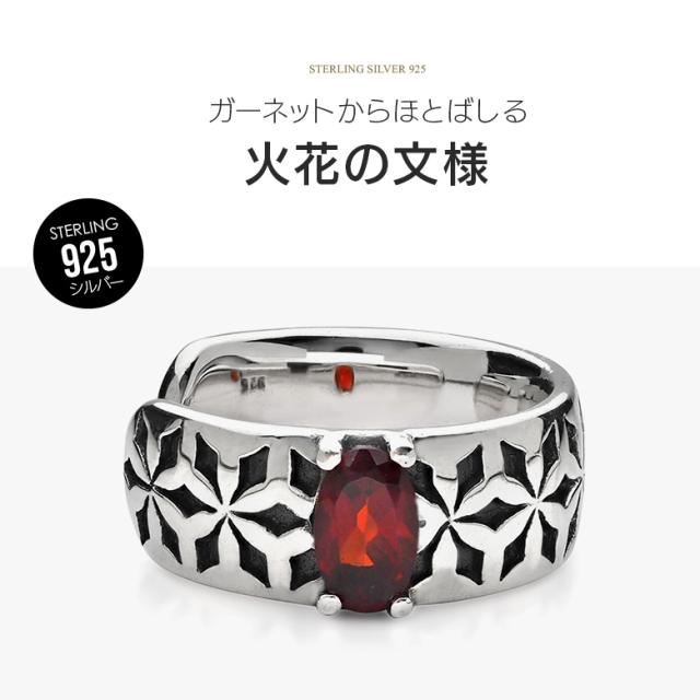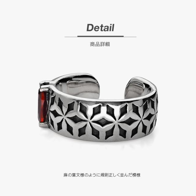 赤いガーネットが印象的なシルバー925製イヤーカフです。和柄風の六方向に広がる火花のような模様を全面に彫ったデザイン。装着するとガーネットが顔の前の方向に向くよう中心から少しずれてセッティングされています。耳にかけるイヤカフなのでピアス穴がなくてもOK。素材は、本格的な仕様のシルバー925で作られています。※装着の度に調節は行わず、調整は初回装着時のみにして下さい。繰り返しサイズ調整されますと破損の原因となります。(※片耳用分のバラ売りの価格です。両耳用で購入される場合は、2回買い物カゴに入れて下さい。)