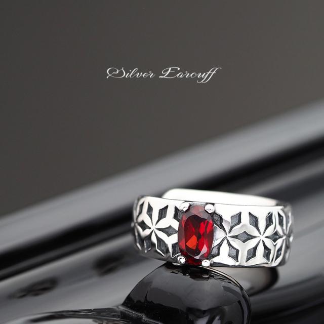 イヤーカフ メンズ 赤 レッド ガーネット 和柄 シルバー925 アクセサリー pi0574 片耳用売り