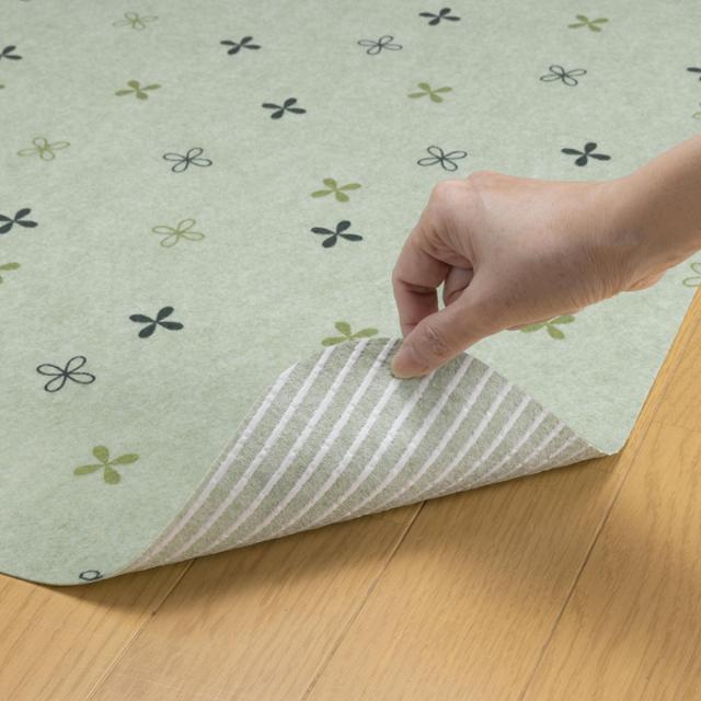 裏面が床に吸着するので、置くだけでマットがズレないため、すべる心配もありません。薄い生地でマットと床の段差が少ないため、つまずきにくく、足元が安心です。掃除機をかけても吸い上がらず、お掃除も楽にできます。