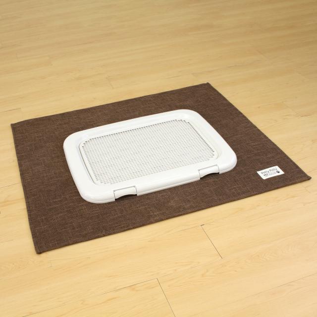 トイレトレーやトイレシーツを置くのにちょうどいいマットです。おしっこがトイレトレーからはみ出しても、撥水加工なのでサッとひと拭きでき、めんどうなトイレ周りの掃除をサポートします。また、洗濯ネットを使えば洗濯機で洗えるので、清潔に保てます。