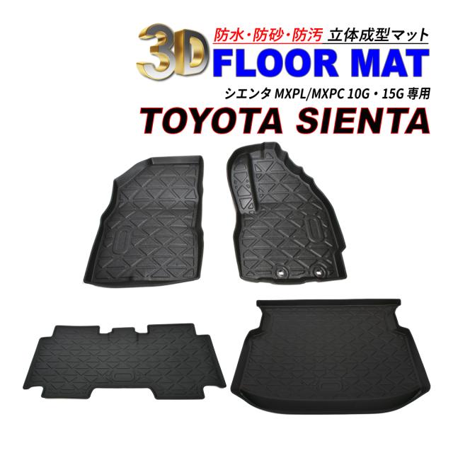 シエンタ MXPL / MXPC 10G 15G 3D フロアマット ラゲッジマット 防水 防砂 防汚 水洗いOK TPE エストラマー素材