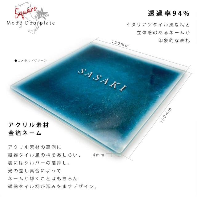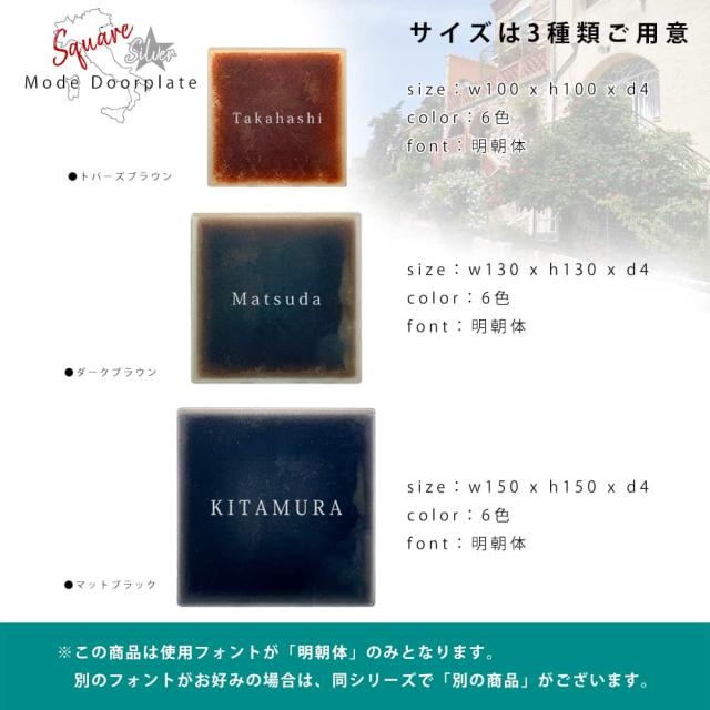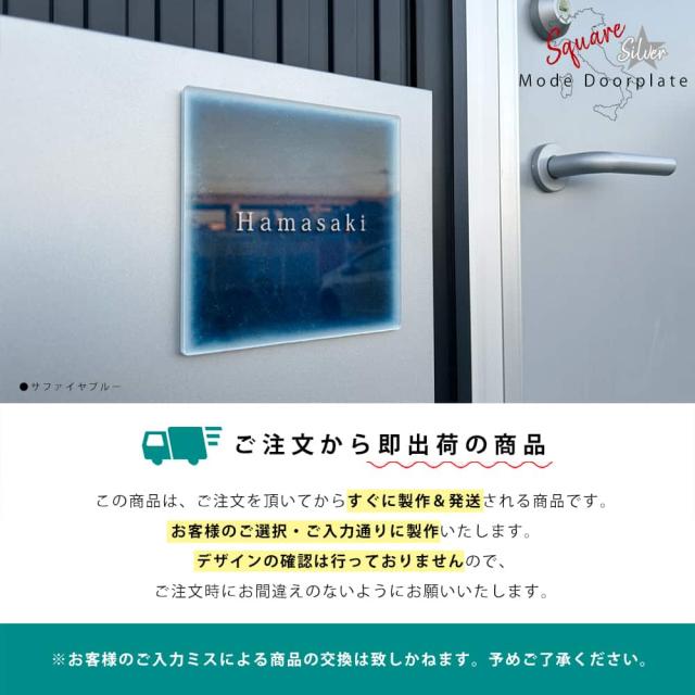 表札 おしゃれ 戸建て 宅配ボックス 郵便ポスト アクリル ドアプレート 正方形 ネームプレート 穴開け不要 工事不要 オシャレ スマート シンプル リッチ 高級感 貼るだけ 軽い 軽量 マンション アパート 賃貸 戸建 両面テープ 接着 箔押し 銀箔 Mode Doorplate 明朝体