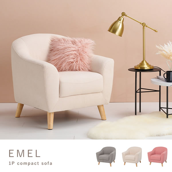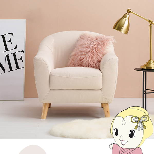 ソファ エメル1P 1人掛けソファ ロータイプ ピンクベージュ ワイド座面 シンプル 萩原