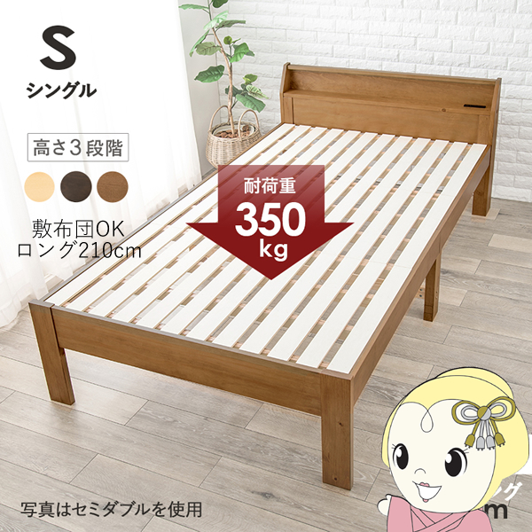 ※写真はメーカー様のカタログ等から掲載させて頂いております。 実物の商品と写真の色が若干写真写り等により異なる場合がありますのでご注意くださいませ。 万が一の際でございましても返品はお受け致しかねます。 ■主要素材 主材:天然木(パイン材) ■商品サイズ (約)幅98×奥行225×高さ73×床面高31/36/41cm ■備考 ■組立式■高さ3段階調節可能(組立時):31/36/41cm■床面サイズ:幅97×長さ210cm■2口コンセント付 ※記載は商品仕様の一部です。仕様説明不足等の理由での返品はできません。特に適合等は必ずご確認ください。