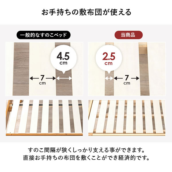 天然木を贅沢に使用した頑丈な造りのすのこベッド