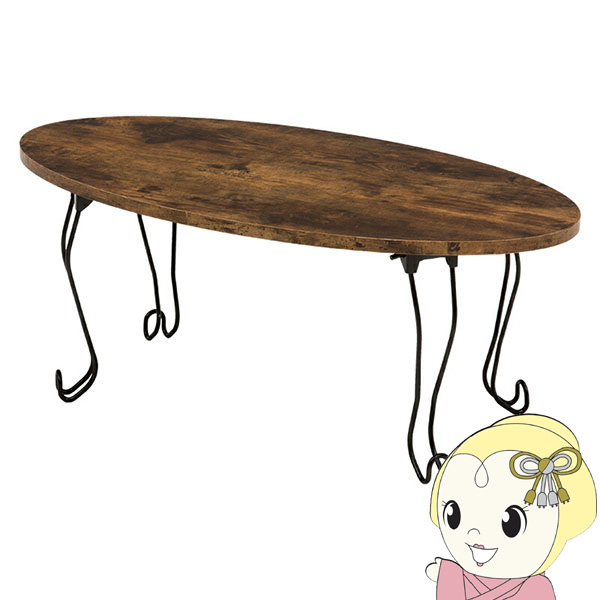 ローテーブル センターテーブル テーブル 机 木目調天板 折りたたみ リビング ソファテーブル 幅80 楕円 ブラウン おしゃれ 萩原