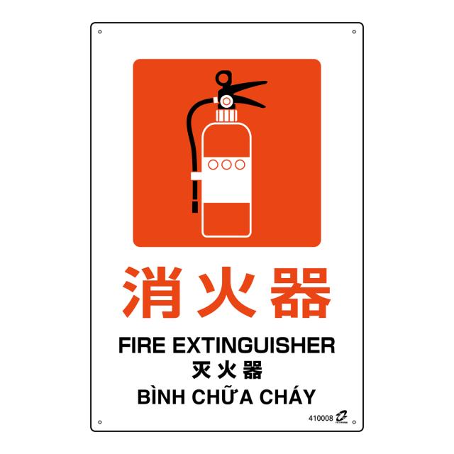 標識板 「 消火器 」 45×30cm PETボトル再利用標識板 4ヵ国語標示 ( 標識 日本語 英語 中国語 ベトナム語 警告 看板 注意喚起 安全標識 防災 表示プレート 注意 喚起 標示 作業 安全用品 注意看板 日本製 )