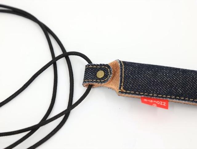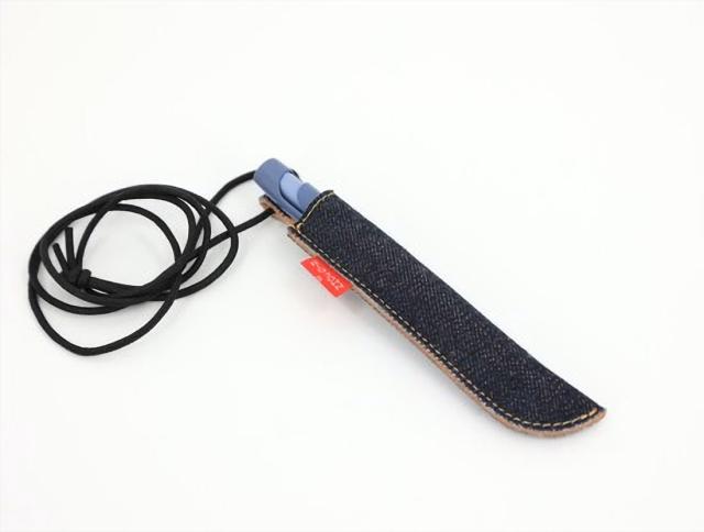 岡山デニムとブラウンレザーの組み合わせ デニムペンホルダーレギュラータイプ ペンの全体をホールドするレギュラータイプ、首から吊り下げる革紐付き
