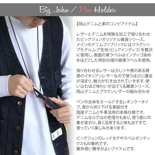 【岡山デニム×レザー】ペンホルダーレギュラー ビッグジョン ワンウォッシュ ネックストラップ BIG JOHN イタリアンレザー ( VPEH02 ) BIGJOHN 定番 日本製 ペンケース ボーペンホルダー レディース メンズ おしゃれ アーベン 普段使い 実用的
