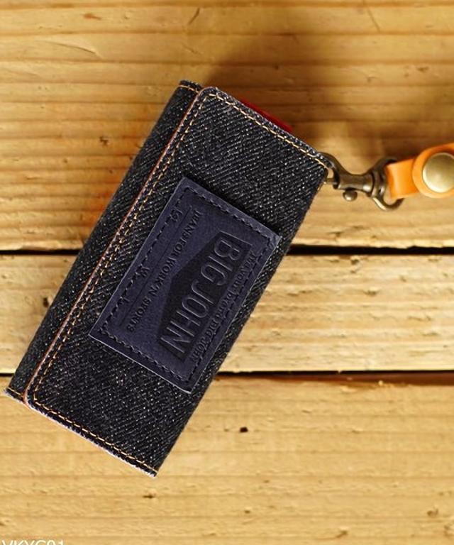 【岡山デニム×レザー】キーケース ビッグジョン ワンウォッシュ キーホルダー BIG JOHN イタリアンレザー ( VKYC01 ) ハンドストラップ付き BIGJOHN 定番 日本製 鍵入れ かぎ レディース メンズ おしゃれ アーベン 普段使い 実用的