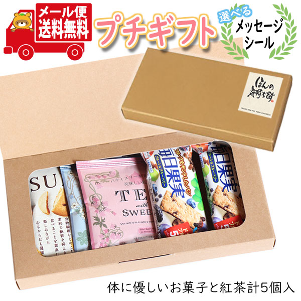 プチギフト お菓子 送料無料 【選べるメッセージシール付き】体に優しいお菓子でほっと一息 紅茶付き グリコSUNAOと毎日果実のミニギフト(3種・5コ) ミニギフト(omtmb8631t)【プチギフト 退職 個包装 お菓子 感謝 ばらまき 大量 お礼 お配り 転勤 異動