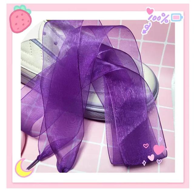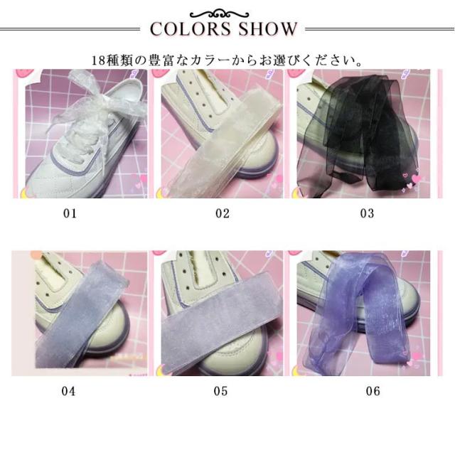靴紐 靴ひも シューレース リボン 幅広 靴アクセサリー 幅広 透け感 送料無料 靴ヒモ スニーカー シューズ 靴 ふんわり ボリューム感 カラバリ豊富 おしゃれ アレンジ 文化祭 学園祭 運動会
