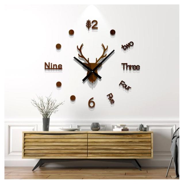 DIY ウォールクロック 特大 超大きいサイズ 時計 壁に貼る時計 静音 鹿 ウォールアート リビング 文字 ステッカー 数字 ブラック クロック 壁 貼れる 貼る 時計 事務室 オフィス 店舗 壁紙 モダン 北欧