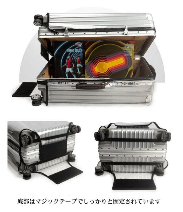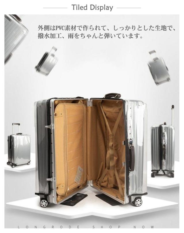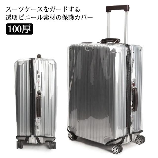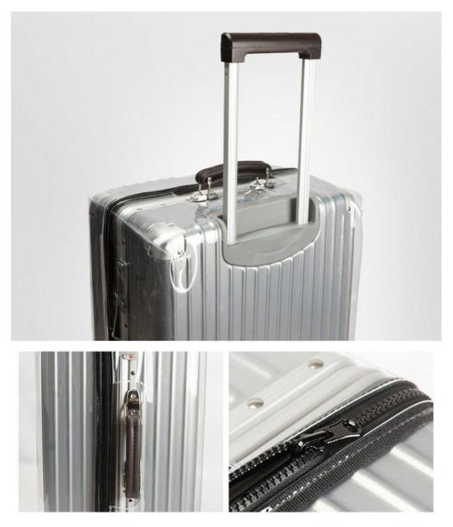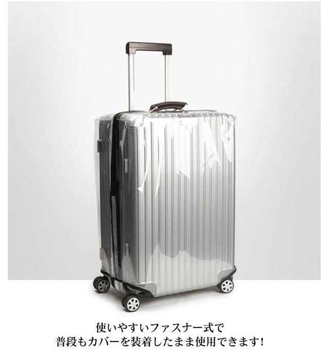 | スーツケースをガードする透明ビニール素材の保護カバー 外側はPVC素材で作られて、しっかりとした生地で、撥水加工、雨をちゃんと弾いています 使いやすいファスナー式で普段もカバーを装着したまま使用できます! 厚手生地で、ケースをキズや汚れから守り、長く綺麗な状態で保てる保護カバーです 底部はマジックテープでしっかりと固定されています | |