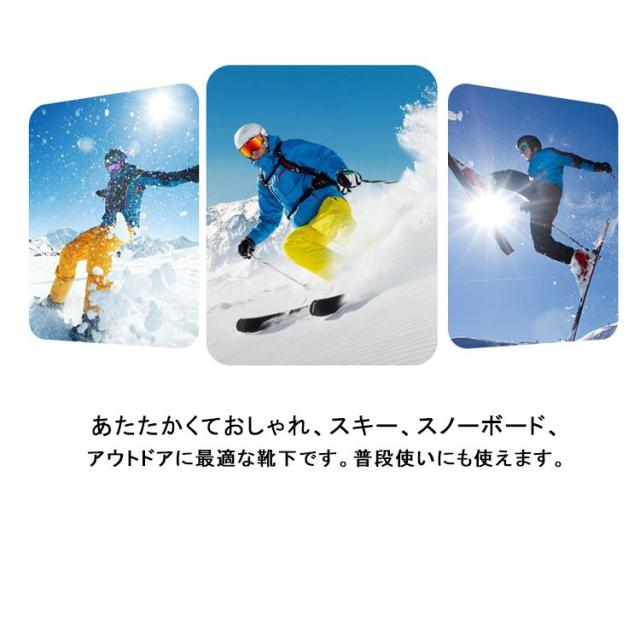 | スキー・スノーボード用ソックス 吸湿性・速乾性に優れたアクリルとナイロン素材を使い、足の蒸れと冷えをしっかり防ぎます。 また、程よい着圧感で足の動きをサポートしてくれます。 内側のパイルで足をしっかり包み込む、暖かい靴下です。 あたたかくておしゃれ、スキー、スノーボード、アウトドアに最適な靴下です。普段使いにも使えます。 | |